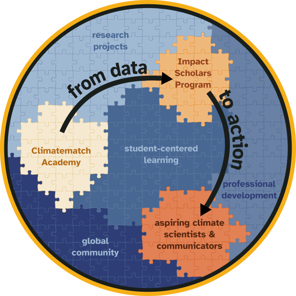 Through this impact-focused program, participants will work with a team of collaborators to do a more intensive exploration of the open climate data sets used in our climate science course and focus on research that has the potential for local change. Professional development in this program further emphasizes how to drive impact through community-focused research.