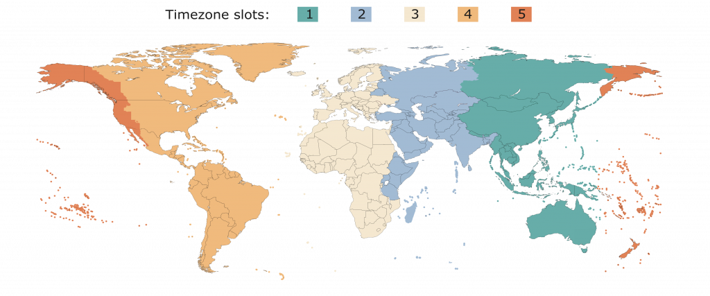 Courses are delivered in five timeslots around the world to align with global time zones. You can see our timezone widget here.