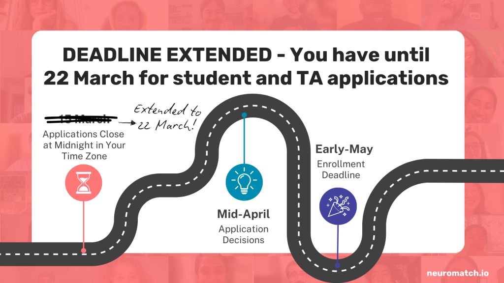 Neuromatch is a scalable organization. As long as applicants meet the prerequisites, we are generally able to scale cohorts and hire additional TAs to support learners. Historically, acceptance rates have been approximately 85–90%, depending on the course. Admission is not intended to be exclusionary; the goal is to ensure readiness for a positive learning experience.